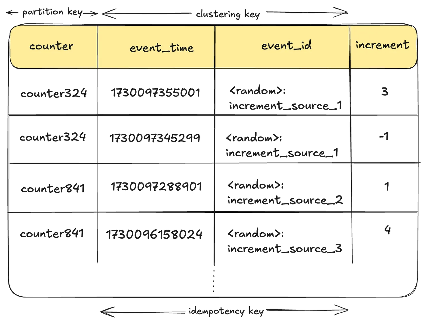 - 보조 키로 bucket_id같은 걸 둔다면? 분산된 카운터중 하나에만 write하고, 읽는 건 동시에 읽는다면?