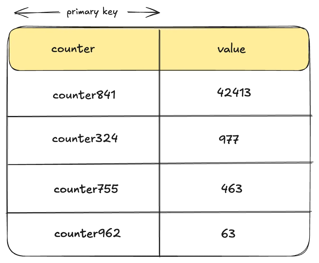 - Approach 1: Storing a Single Row per Counter