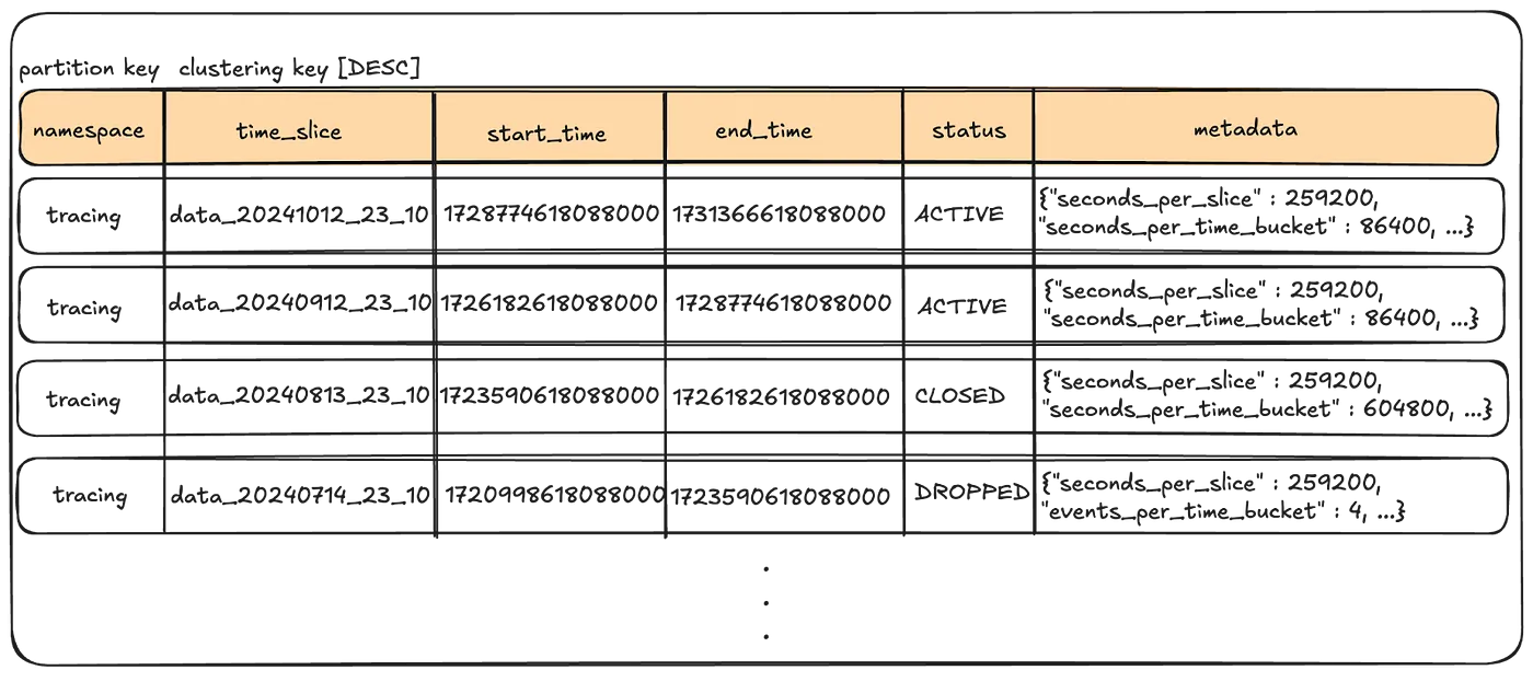 - Time Slice 내에서, event time 기준으로 한번 더 파티셔닝됨. range query를 더 효율적으로 하기 위함