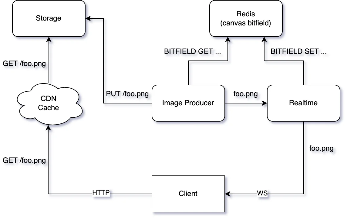 - 픽셀을 칠한 유저 정보 등등의 메타데이터는 Cassandra에 저장했다고 함