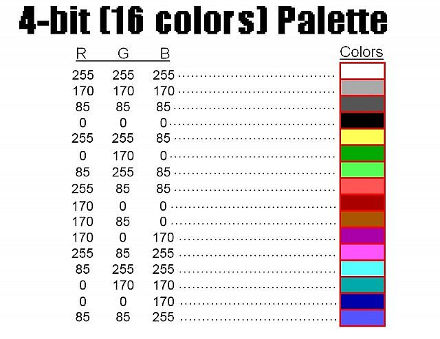 4비트로 어떻게 색상을 표현하는지에 대한 이미지가 안보임.. 아마 아래와 같은 느낌이 아닐까..